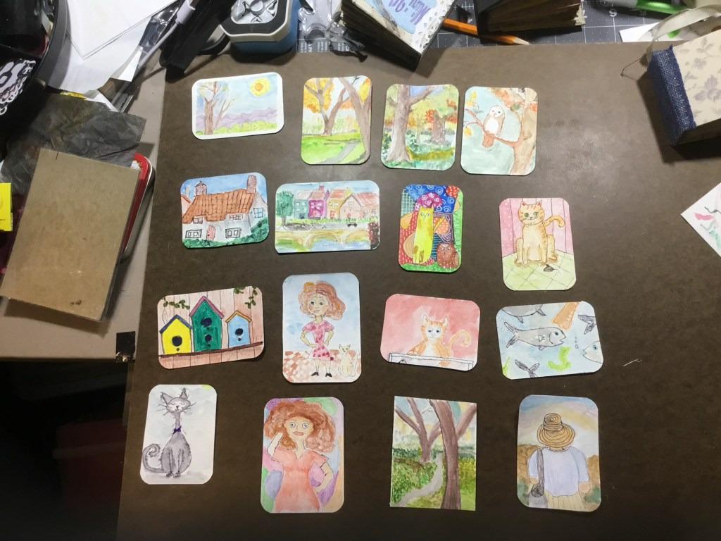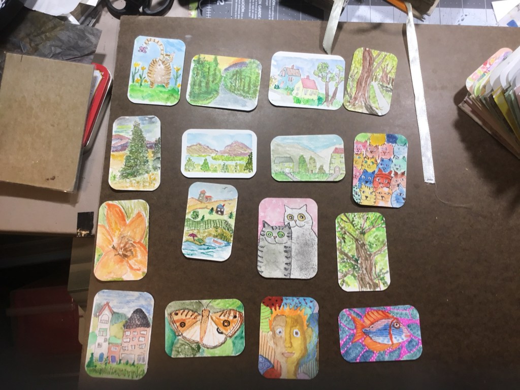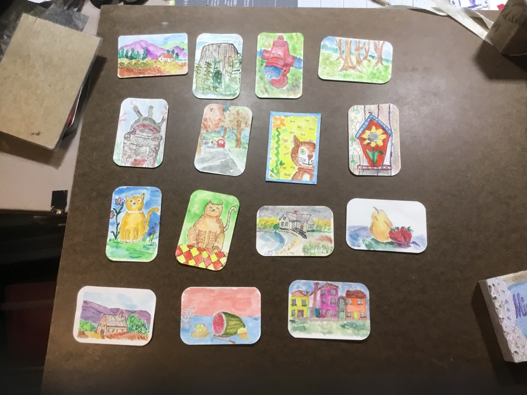 I’m almost caught up with my miniature watercolors. I set a schedule of one painting every three days. September and October had so many things going on that I got behind in painting Now, I’m only two paintings behind and I think I’m finding a way to do decent landscapes. I still need more practice.